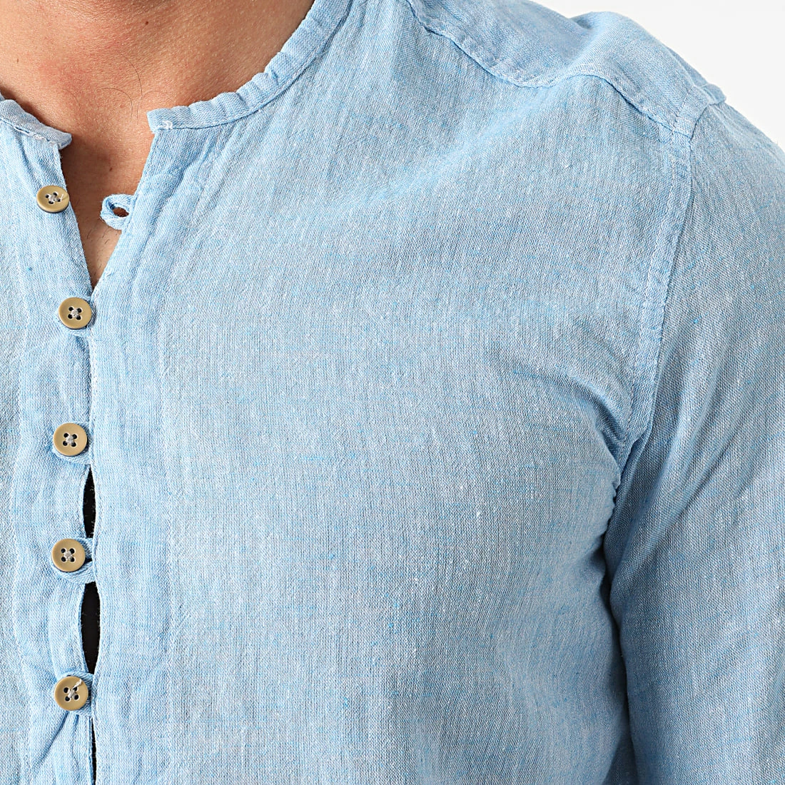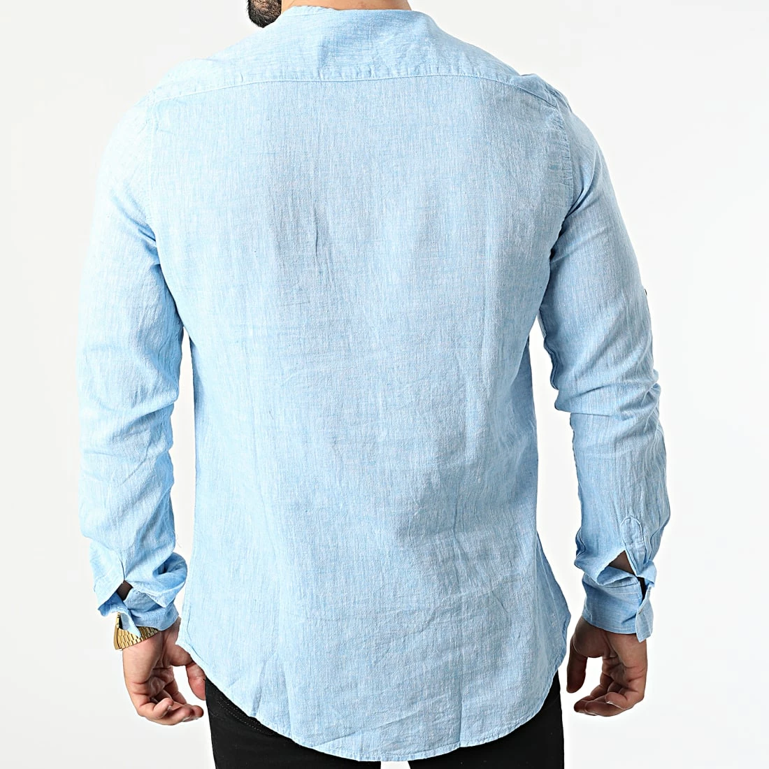Budget 😍 Chemise Manches Longues Col Tunisien JCH-802 Bleu Clair Chiné de Armita ✔️