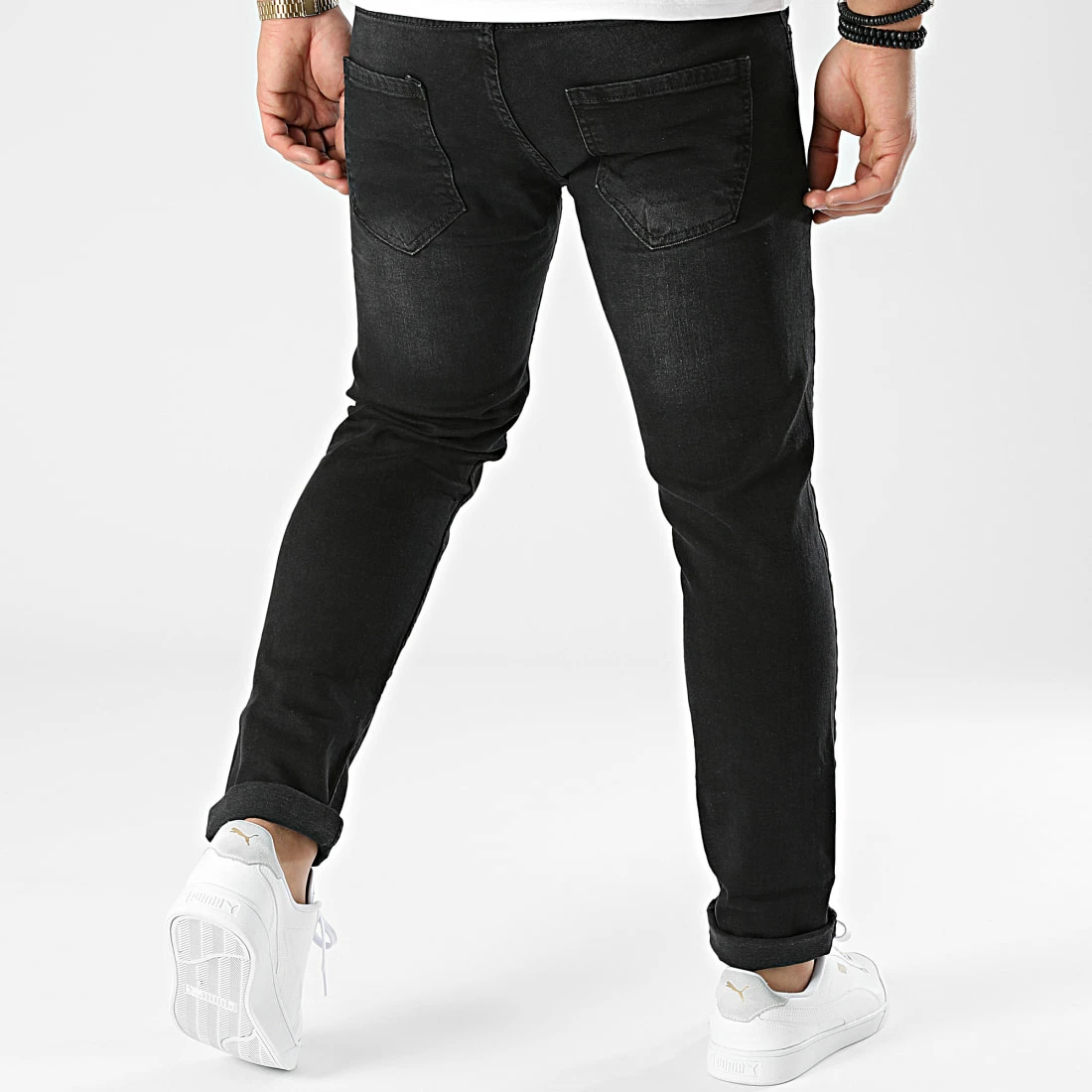 • Jean slim avec finitions usée et délavée