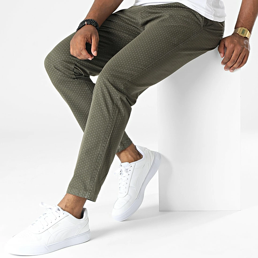 • Pantalon chino slim tendance avec motif imprimé