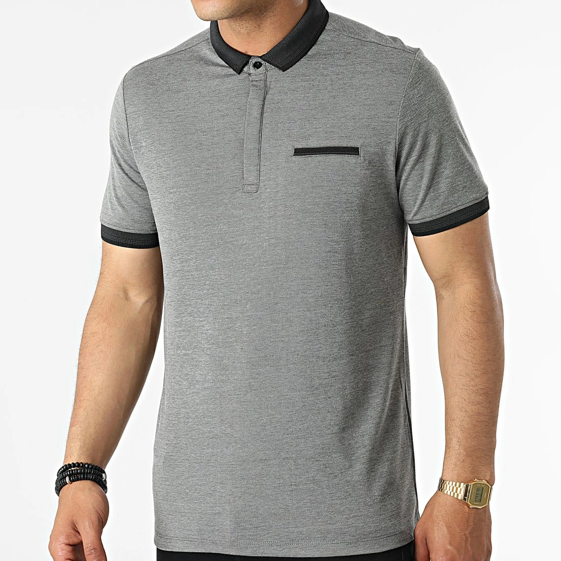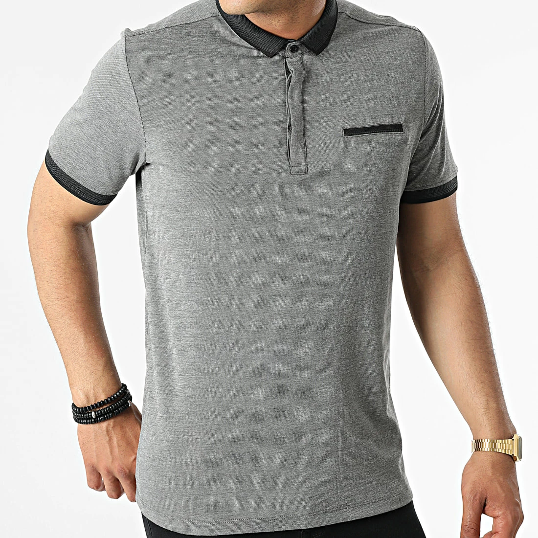 Remise ❤️ Polo A Manches Courtes 569 Noir Chiné de Armita ✔️