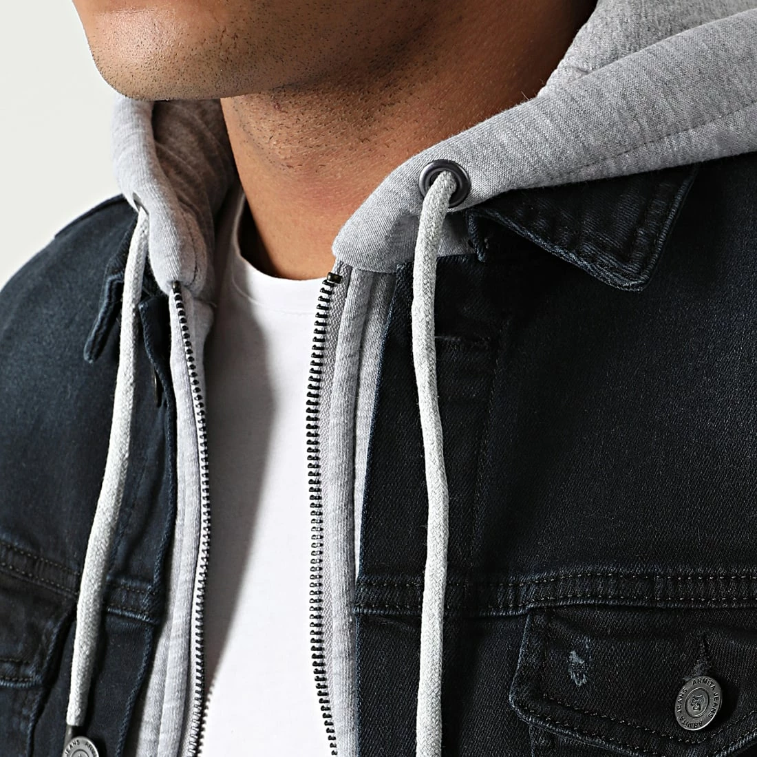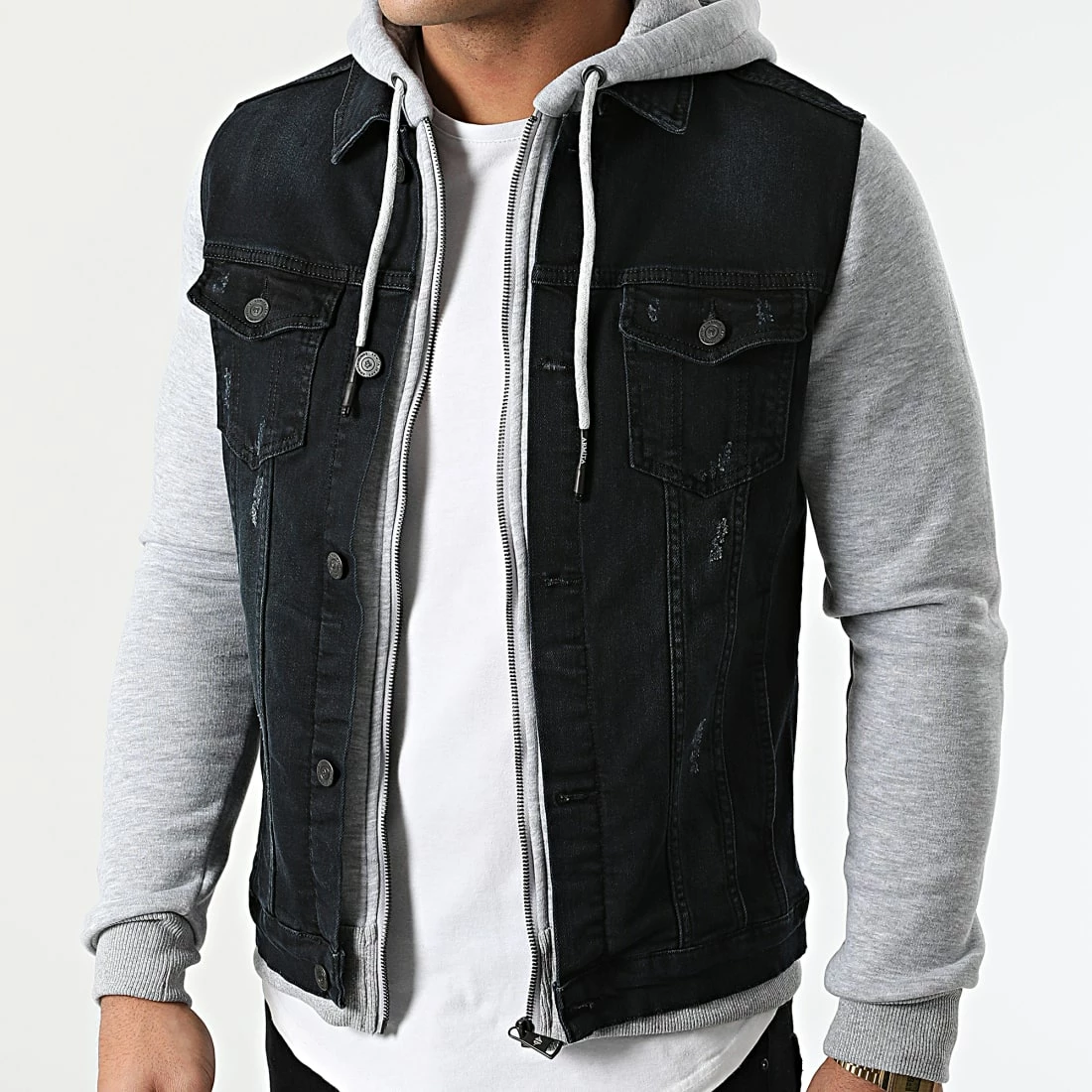 Vente flash 🎁 Veste Jean Capuche GJ-3023 Bleu Brut Gris Chiné de Armita 👏