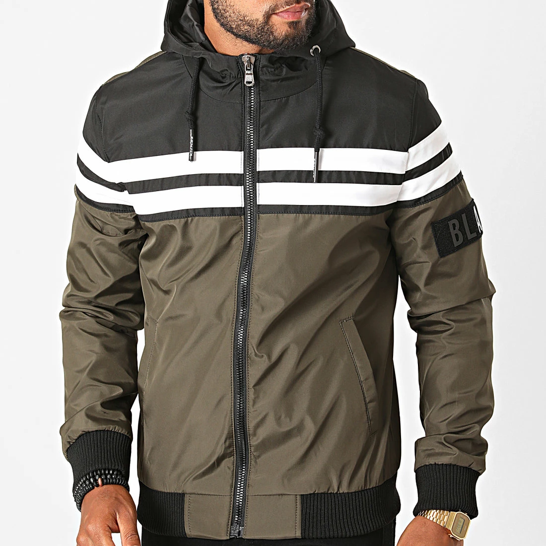 Remise ⭐ Veste Zippée Capuche S3165 Vert Kaki Noir de Armita 🔥